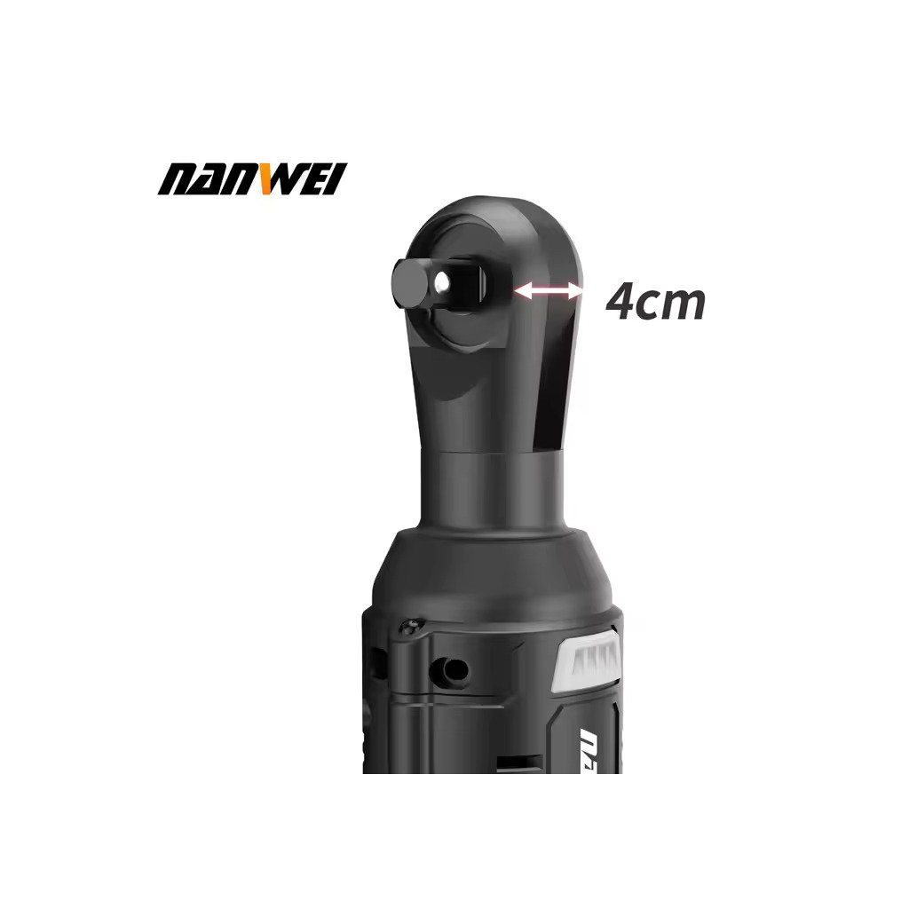 Akumulátorový elektrický klíč NANWEI 21V s bezkartáčovým motorem a maximálním krouticím momentem 75NM. Pohon o velikosti 3/8 palce, napájený lithium-iontovou baterií.