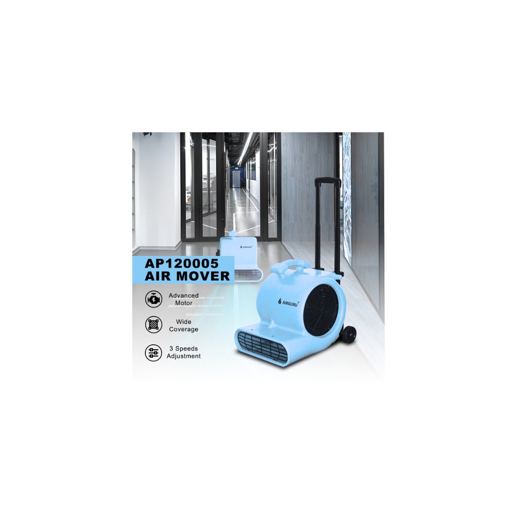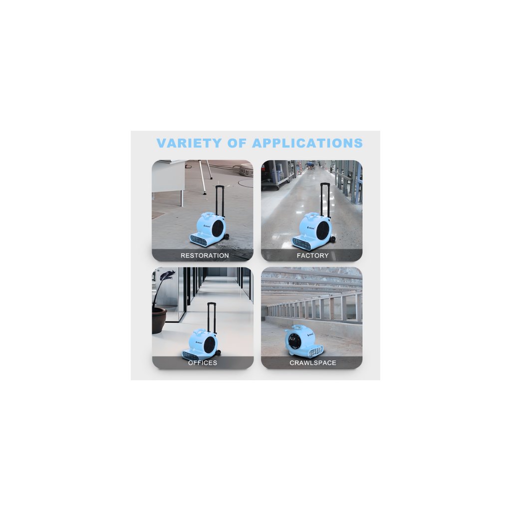 Průmyslový ventilátor vybavený praktickou rukojetí a kolečky umožňuje snadnou manipulaci a přesouvání podle potřeby. S výkonem 1/3 HP a průtokem vzduchu 1119 CFM poskytuje silný tlakový proud, který se hodí pro odvětrávání, sušení i ochlazování pracovních prostor.